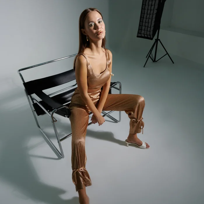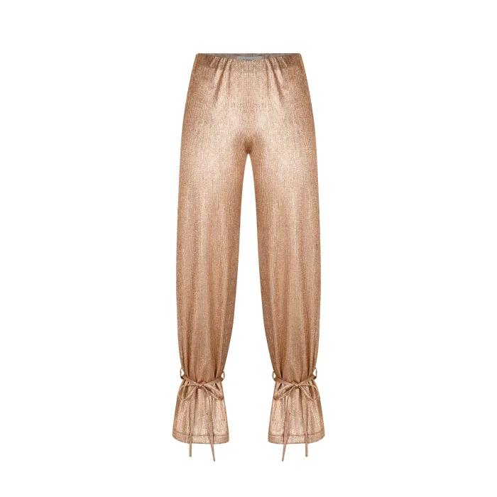 Elastic waist comfortable and stylish women's light shiny pants with tie-on legs