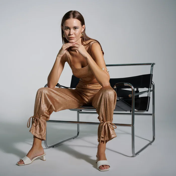 Comfortable and stylish women's light shiny bustier with elastic at the back and lining inside