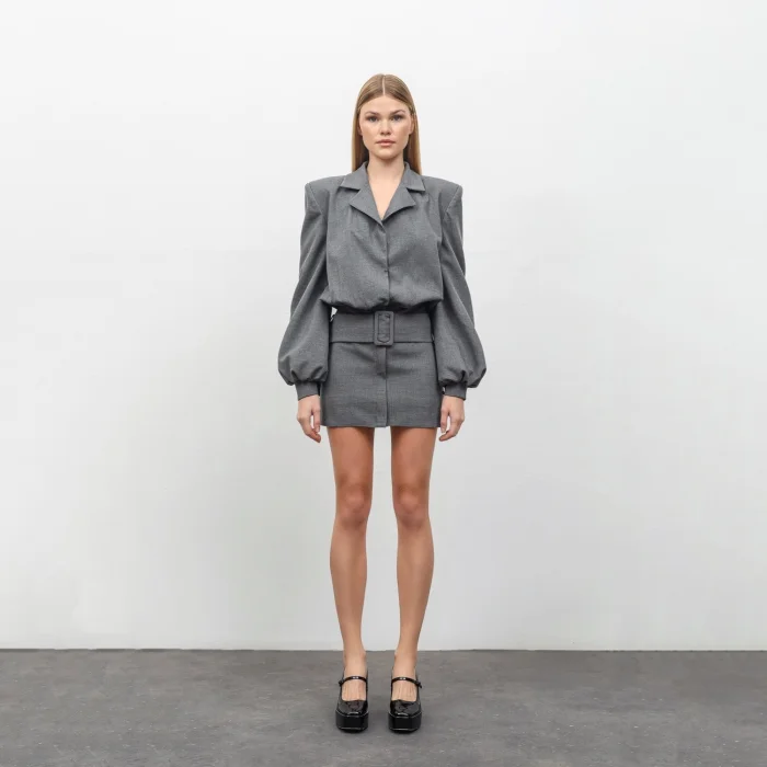 Padded, Jacket collar, Belt detailed, Balloon Sleeves, Mini Jacket DressProduct: Jaqluine DressDesigner: RanProduct Code: RAN-JAC005-SThis product will be sent by Ran on behalf of hipicon