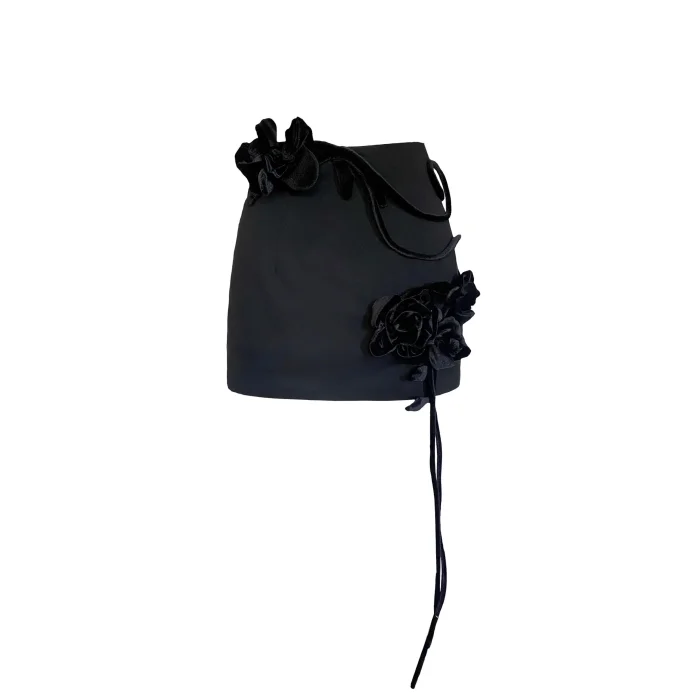 Black Velvet Flower Detailed, Super Mini Length, Tight, Zippered SkirtProduct: Rose SkirtDesigner: RanProduct Code: RAN-RSK003LThis product will be sent by Ran on behalf of hipicon