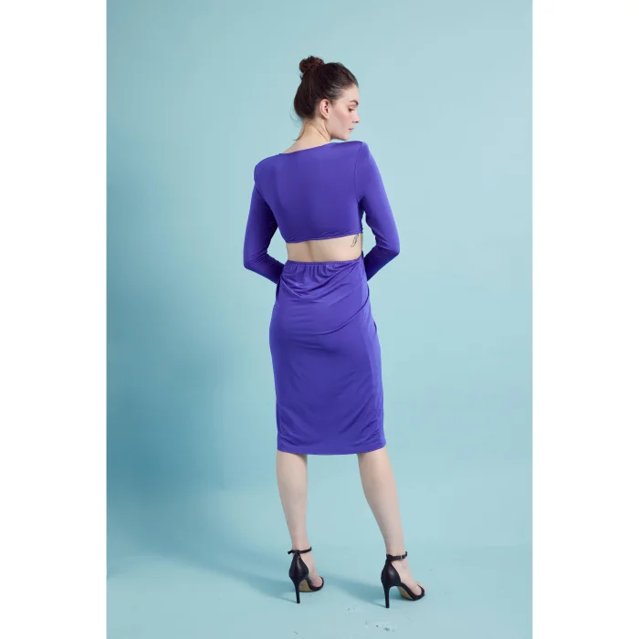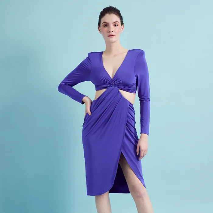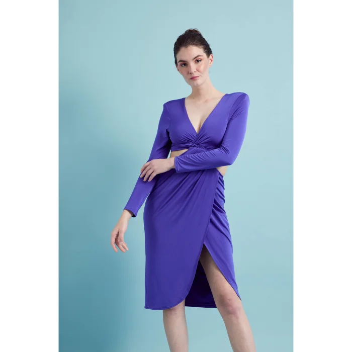 V-Neck Waıst Detaıled Mıdı Sıze Cocktaıl Dress