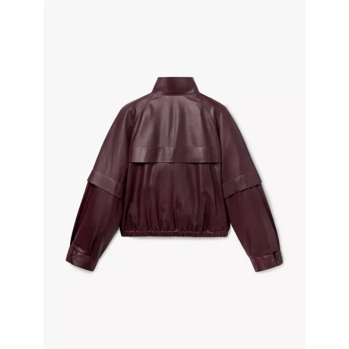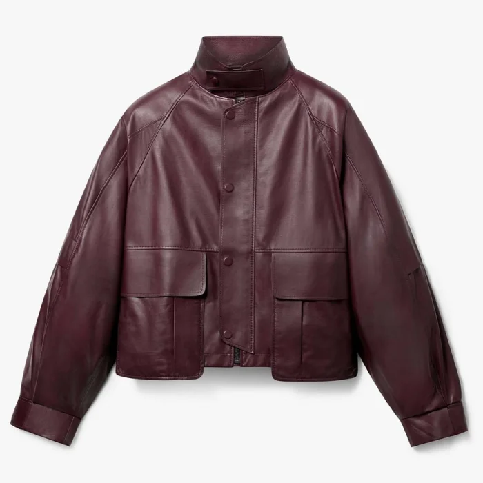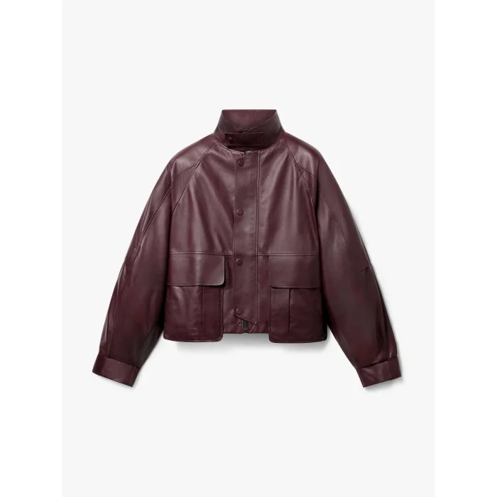 Vegan leather high-collar oversize jacket with pocket detail