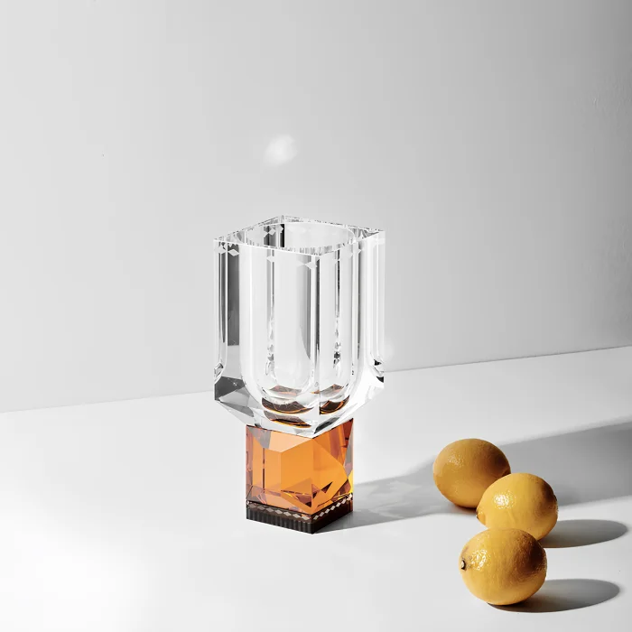 Material: Handcrafted cut crystal Color: Amber/Black Size: Height: 25.5cm x Width: 11cm x Depth: 11cm Weight: 4.0kg Custom Gift Box: Shipped in Reflections Copenhagen luxury signature box. Production: Handmade Official Distributor: Magic FurnitureReflections Copenhagen aims to create bold and eye-catching crystal pieces by pushing the boundaries of decorative luxury. It encourages people to break norms and adopt their own unique style. Its design brings new dimensions and possibilities to interiors by questioning traditional styles, colors and forms. The craftsmanship is evident in the unique details and exquisite irregularities in each piece. The brand was born with the idea of offering an alternative beyond the ordinary and appeals to an unusual understanding of interior design by dynamically combining decoration and art.