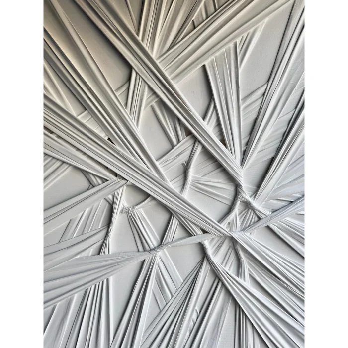 of Silence' tells us that silence is not as flat and empty as it seems. Each strip on the work actually represents an experience, a thought or an emotion. As these layers pass over each other, sometimes they are knotted and sometimes they are released. But they all unite at the end of the day in one color, the purity of white.