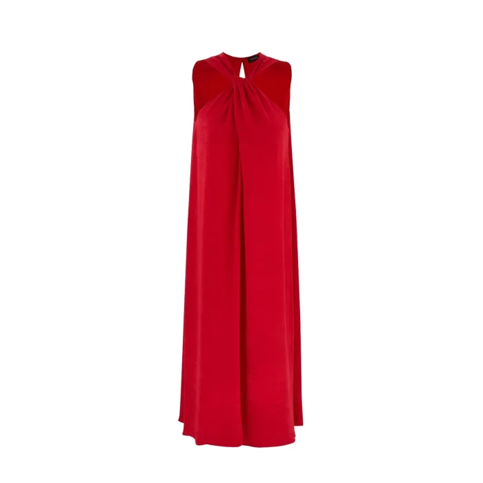 Step into timeless elegance with the Dahab Dress. This floor-length masterpiece is crafted from a luxurious blend of Tencel, silk, and viscose, offering a smooth and flowing silhouette.