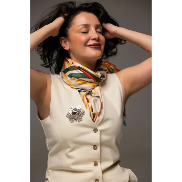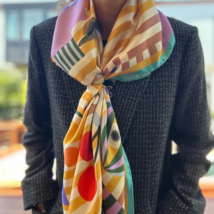 The edges of our scarves, whose patterns are carefully selected, are produced with a special touch by turning them by hand. Each scarf is carefully packed in a cotton pouch and sets out for you. Our products are produced using only vegan silk and/or cotton.