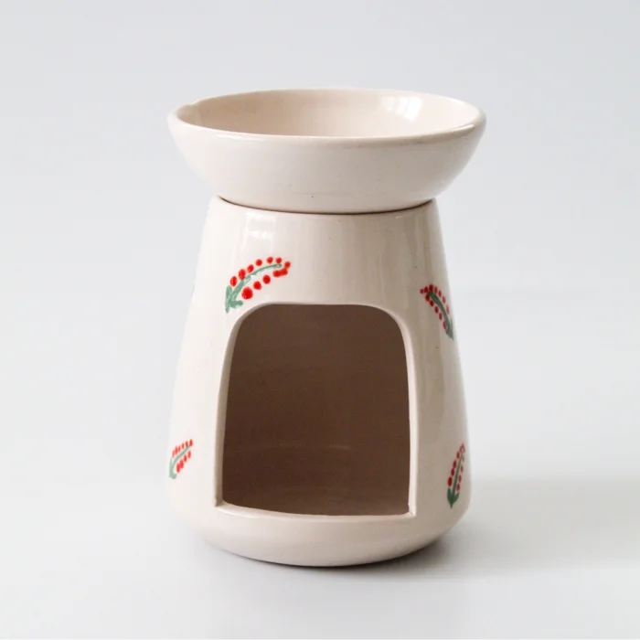 a lit candle (tealight) in the candle chamber at the bottom of the censer Christmas No:4. With the heat of the candle, the water-essential oil mixture at the top of the censer will gradually heat up and the essential oil will evaporate, allowing you to scent your environment.