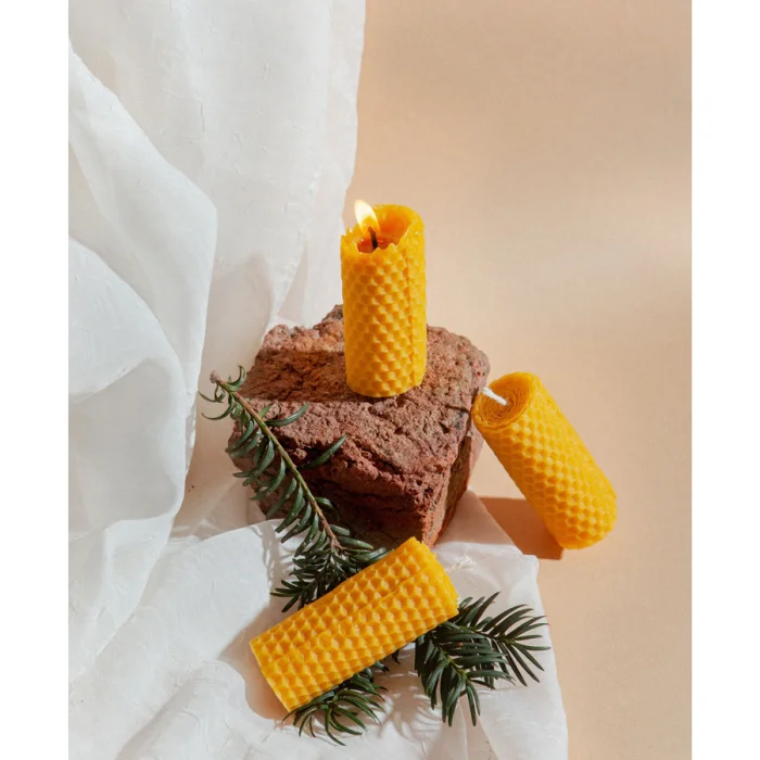 Product: Set of 3 Small Size Rolled Natural Beeswax Candles