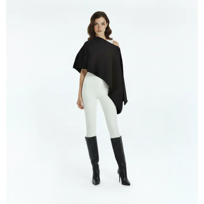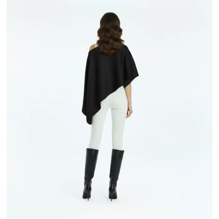 Morpho is a powerful signature piece that gives a modern silhouette to every combination with its sculptural asymmetrical form and silky knitwear texture. It reflects a minimal yet impressive design approach. Its asymmetrical and fluid cut drapes gracefully from the shoulder, creating a special volume. It is suitable for daytime style with simple trousers and evening looks with leather boots. It maintains its form with its 52% rayon, PBT and nylon blended texture. Both marbling (off-white) and black color options are available. It is light, fluid, modern and timeless.