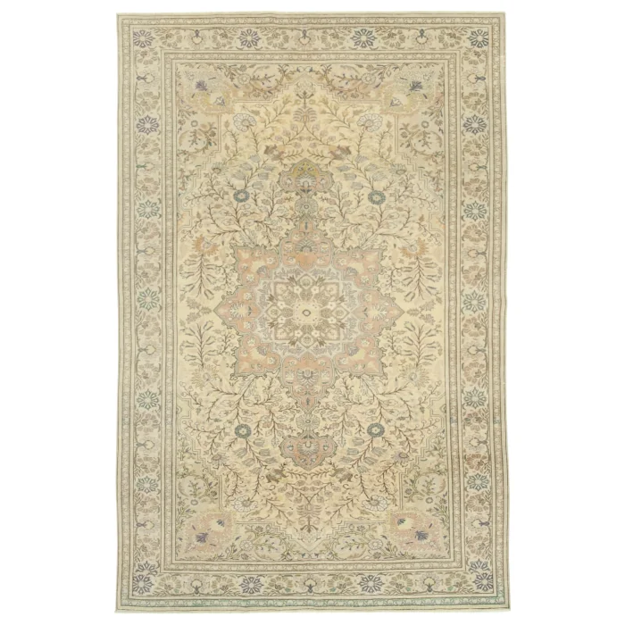 Vintage Turkish Rug 192 cm width and 304 cm length and the pile height is 5mm, the approximate weight of the rug is 13 kg. It’s % 100 hand knotted wool and goat hair rug. It’s made from the natural dye.
