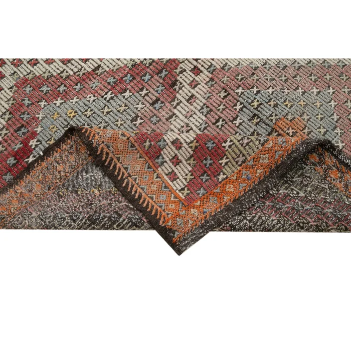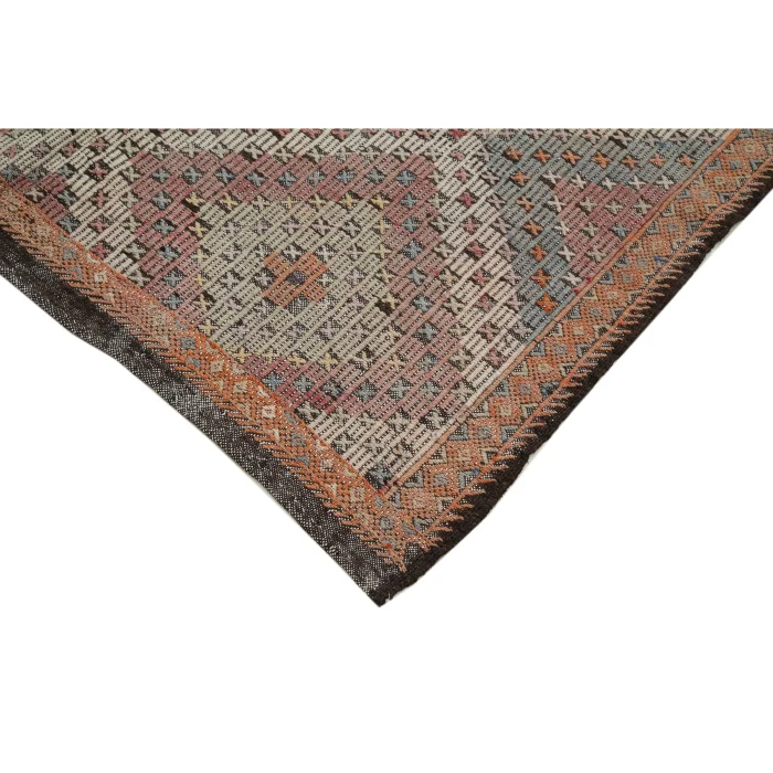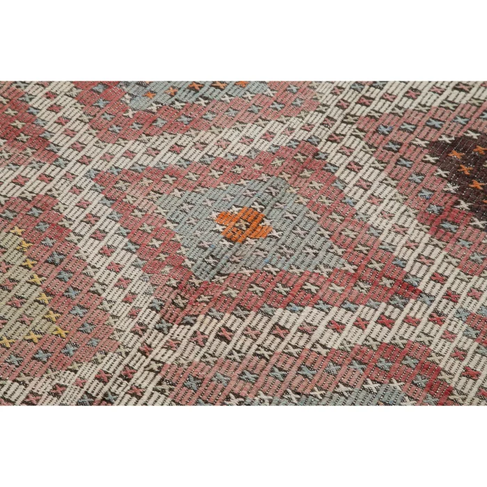 Vintage Cecim kilims are on 145 cm width and 370 cm length and the pile height is 5mm, the approximate weight of the rug is 11 kg. It’s % 100 handknotted wool and goat hair rug. It’s made from the natural dye.