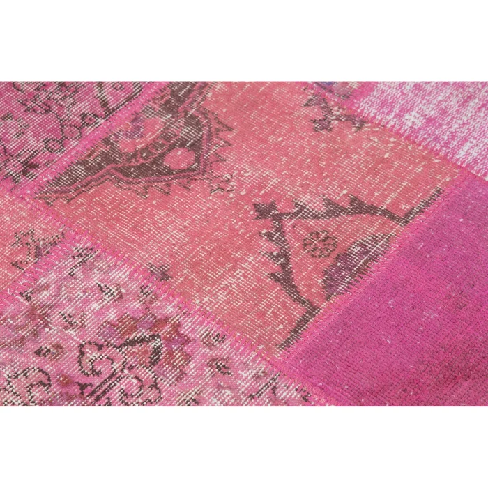 The Round Patchwork Carpet has a diameter of 148 cm and a thickness of approximately 5 mm. It weighs an average of 7 kg. It is made with hand-spun wool and cotton. It gets its colors from root dyes obtained naturally.