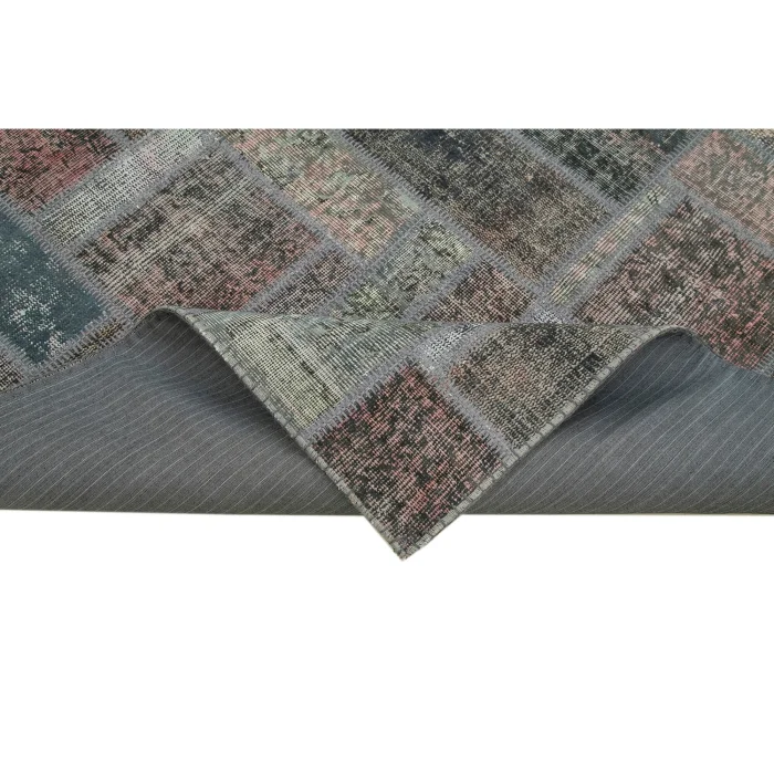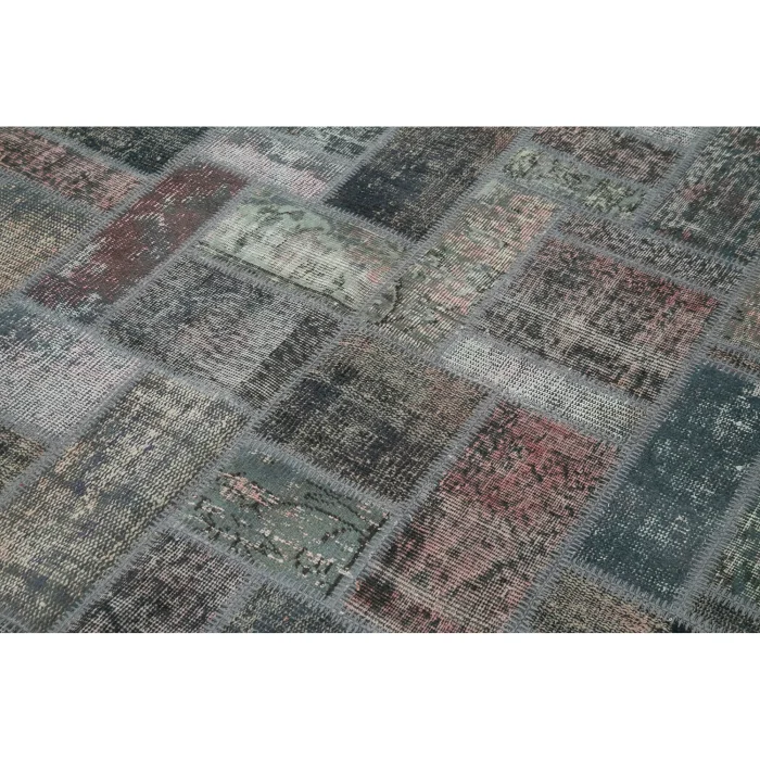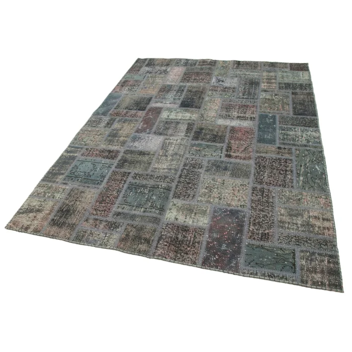 Modern Design Patchwork Carpet is 171 cm wide, 238 cm long and approximately 5 mm thick. It weighs an average of 12 kg. It is made with hand-spun wool and cotton. It gets its colors from root dyes obtained naturally.