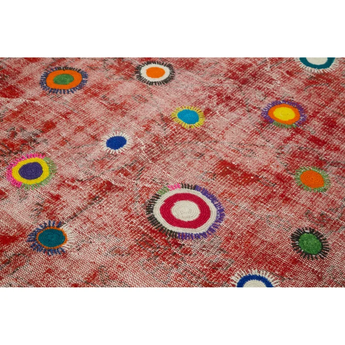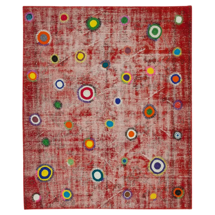 Modern Design Patchwork Carpet is 179 cm wide, 214 cm long and approximately 5 mm thick. It weighs an average of 11 kg. It is made with hand-spun wool and cotton. It gets its colors from root dyes obtained naturally.
