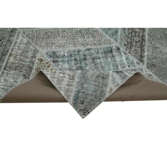 Modern Design Patchwork Carpet is 245 cm wide, 309 cm long and approximately 5 mm thick. It weighs an average of 22 kg. It is made with hand-spun wool and cotton. It gets its colors from root dyes obtained naturally.