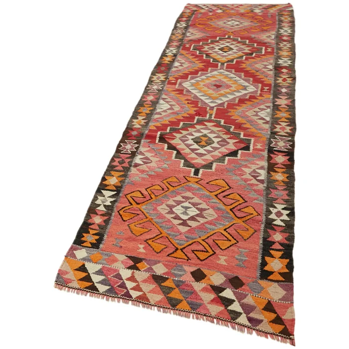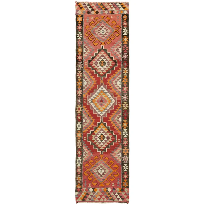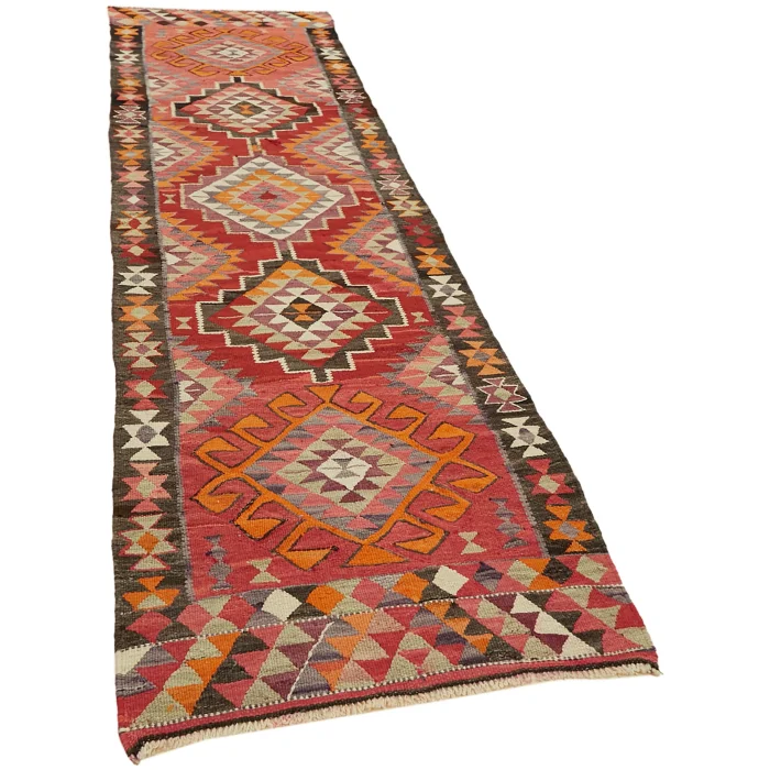 Herki Kilim Rug 100 cm width and 345 cm length and the pile height is 5mm, the approximate weight of the rug is 14 kg. It’s % 100 hand knotted wool and goat hair rug. It’s made from the natural dye.