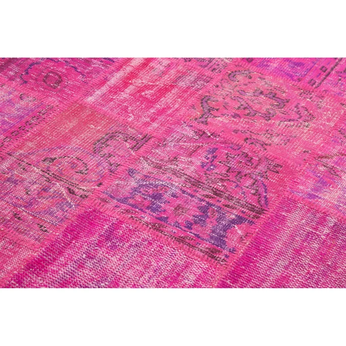 Patchwork Carpet is 175 cm wide, 242 cm long and approximately 5 mm thick. It weighs an average of 12 kg. It is made with hand-spun wool and cotton. It gets its colors from root dyes obtained naturally.