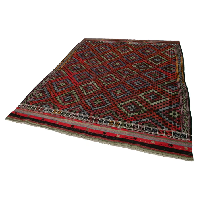 Vintage Cicim Rug is 214 cm wide, 290 cm long, 5 mm thick, and weighs an average of 13 kg. It is made of hand-spun 100% Organic Wool and Bristle. Root dye obtained naturally is used. / Vintage Cecim kilims are on 214 cm widht and 290 cm lenght and the pile height is 5mm, the approximate weight of the rug is 13 kg. It's 100% handknotted wool and goat hair rug. It's made from the natural dye.