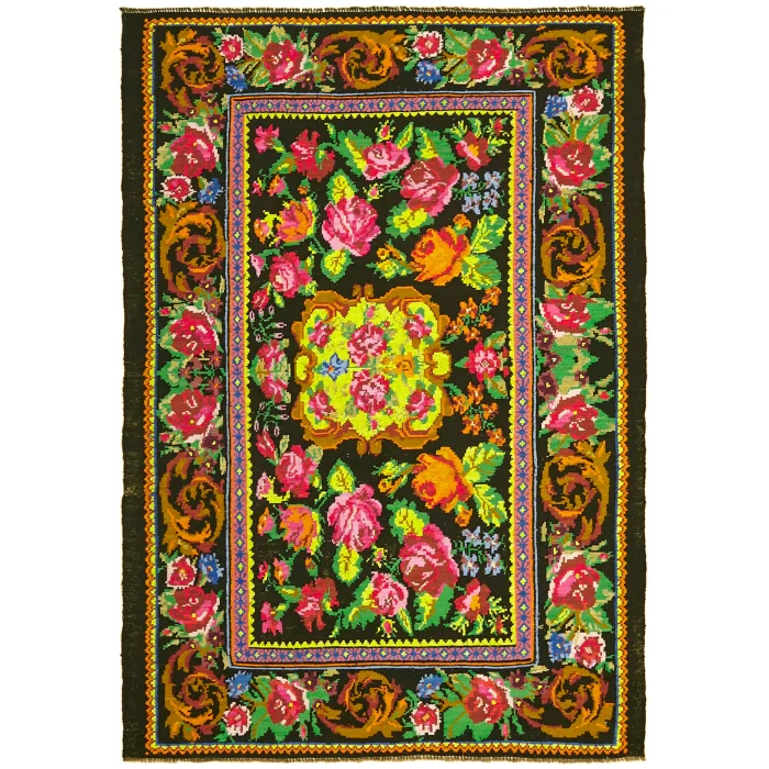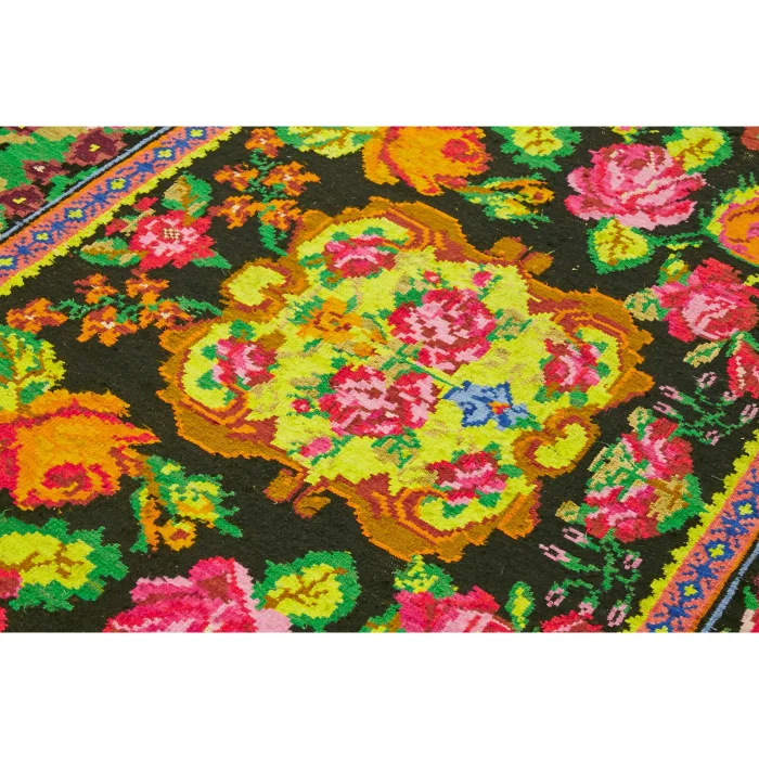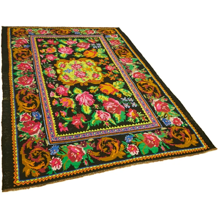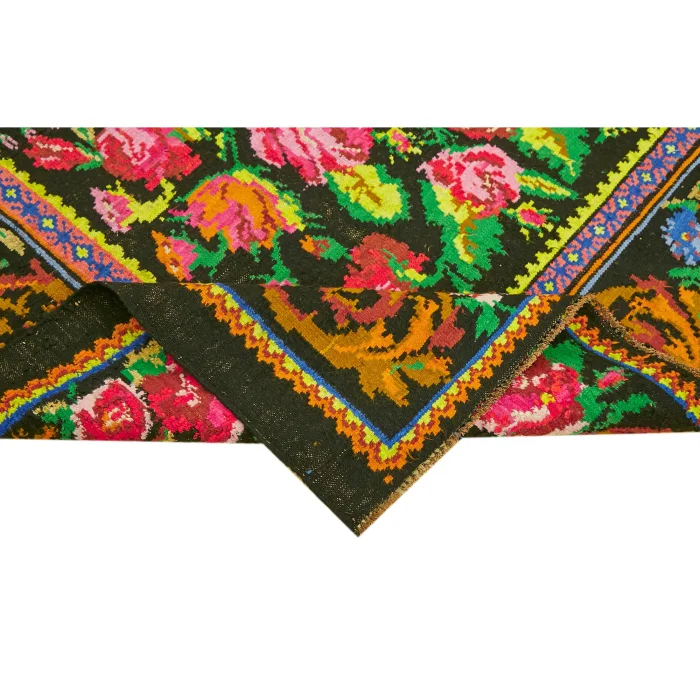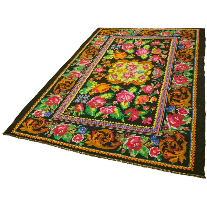 Floral Kilim Rug 189 cm width and 260 cm length and the pile height is 5mm, the approximate weight of the rug is 9 kg. It’s % 100 hand knotted wool and goat hair rug. It’s made from the natural dye.