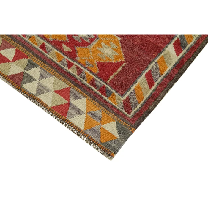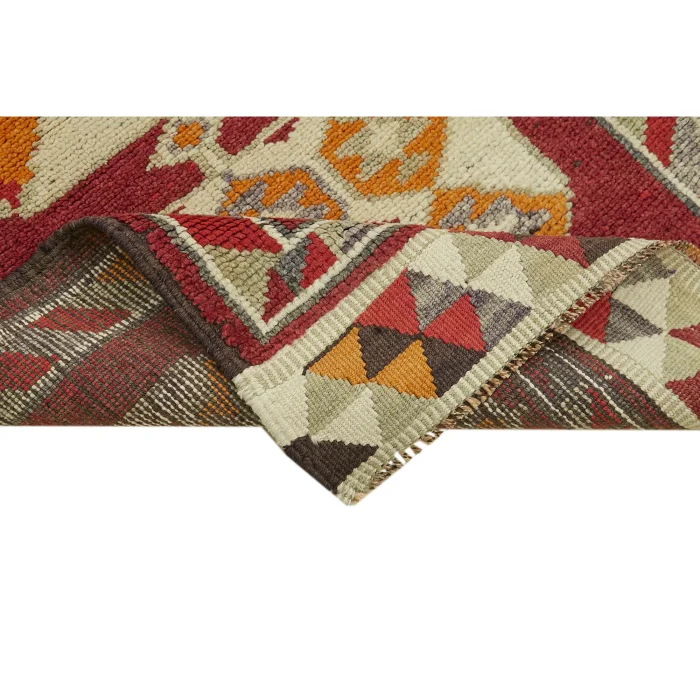Herki Carpet Runner is 90 cm wide, 355 cm long, 5 mm thick, and weighs an average of 8 kg. It is made of hand-spun 100% Organic Wool and Cotton. Root dye obtained naturally is used.