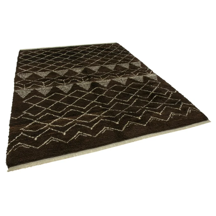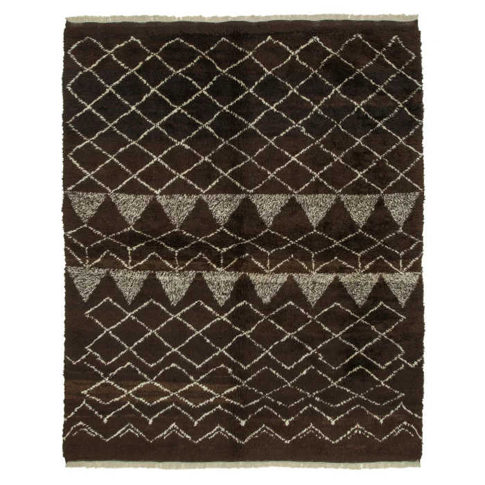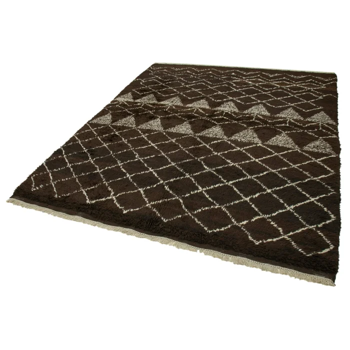 Moroccan Rug 217 cm width and 272 cm length and the pile height is 5mm, the approximate weight of the rug is 19 kg. It’s % 100 hand knotted wool and goat hair rug. It’s made from the natural dye.