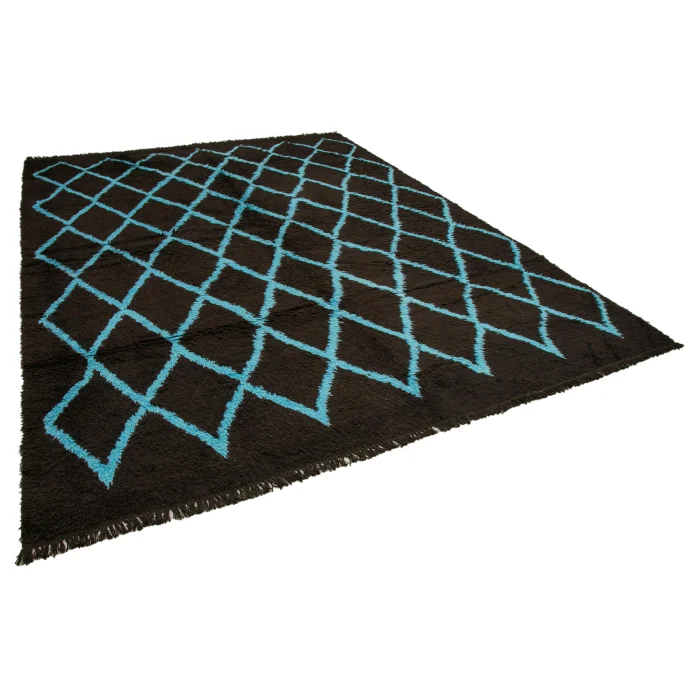 Moroccan Rug 275 cm width and 370 cm length and the pile height is 5mm, the approximate weight of the rug is 33 kg. It’s % 100 hand knotted wool and goat hair rug. It’s made from the natural dye.