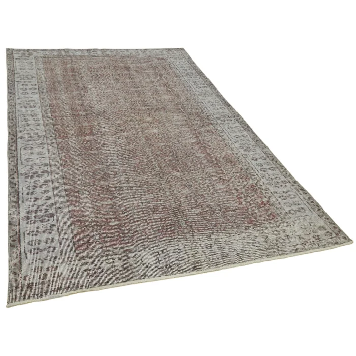 Overdyed Vintage Rug 159 cm width and 260 cm length and the pile height is 5mm, the approximate weight of the rug is 9 kg. It’s % 100 hand knotted wool and goat hair rug. It’s made from the natural dye.