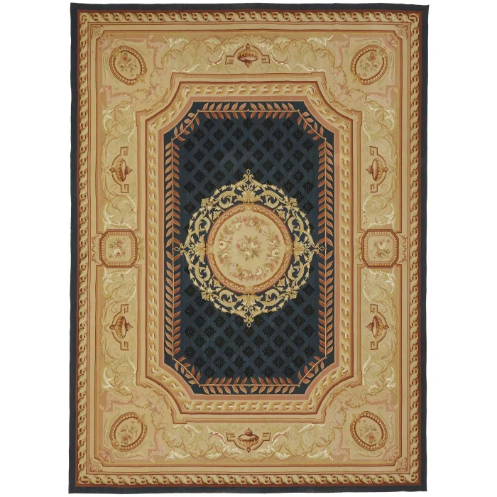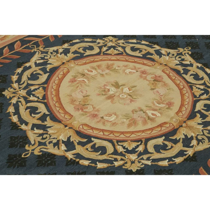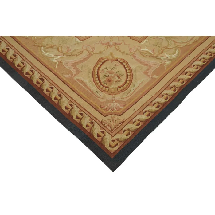 The Aubusson Kilim is 274 cm wide by 375 cm long and about 5 mm thick. It weighs an average of 11 kg. It is made with hand-spun wool and cotton. It takes its colors from root dyes obtained naturally.