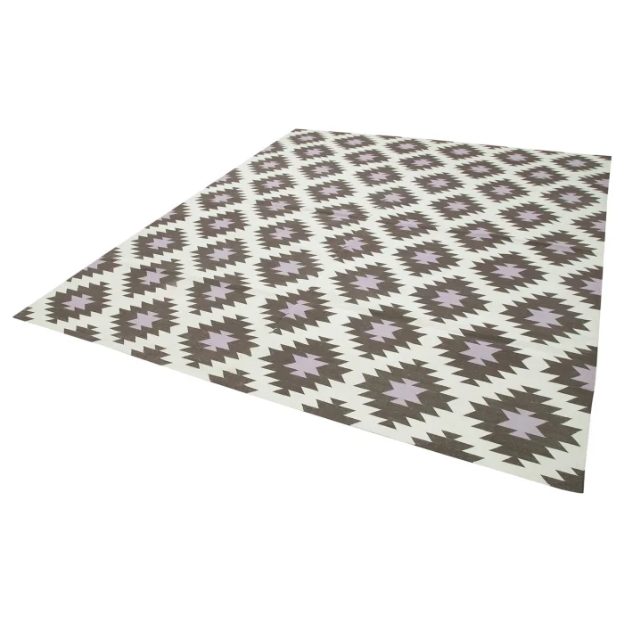 Geometric Kilim 246 cm width and 296 cm length and the pile height is 5mm, the approximate weight of the rug is 8 kg. It’s % 100 handknotted wool and goat hair rug. It’s made from the natural dye.