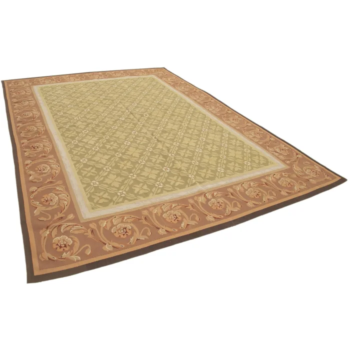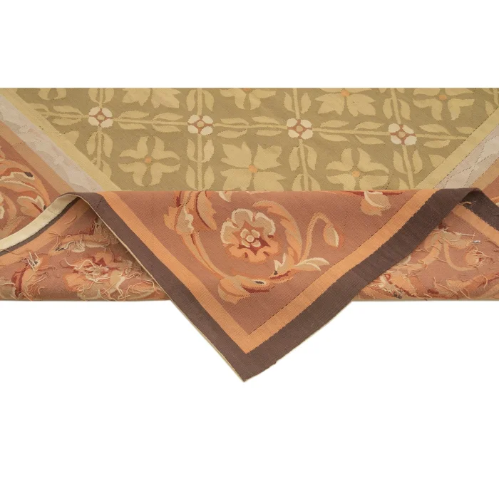 The Aubusson Kilim is 261 cm wide by 365 cm long and about 5 mm thick. It weighs an average of 11 kg. It is made with hand-spun wool and cotton. It takes its colors from root dyes obtained naturally.