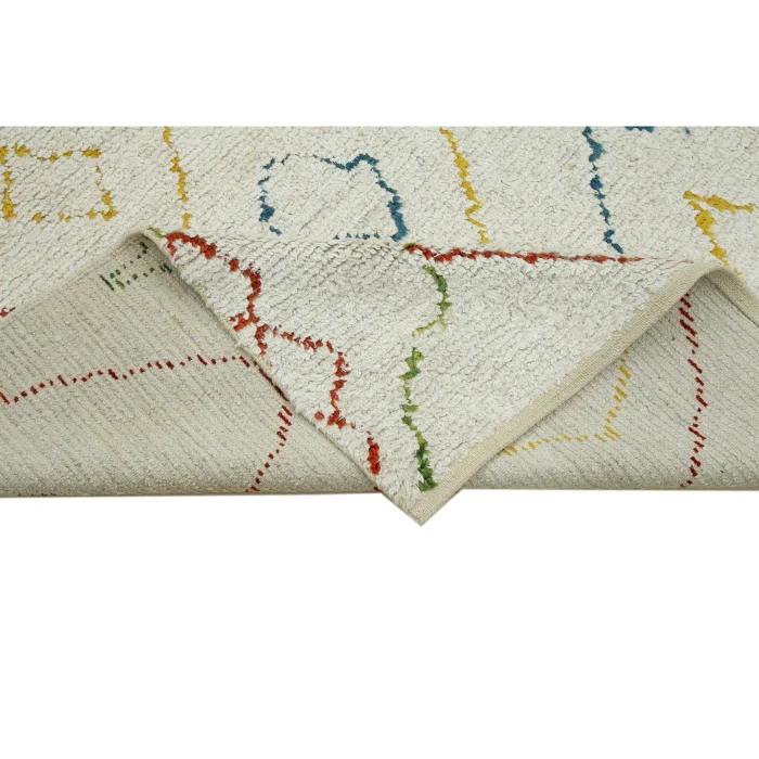 Moroccan Rug 240 cm width and 305 cm length and the pile height is 5mm, the approximate weight of the rug is 23 kg. It’s % 100 hand knotted wool and goat hair rug. It’s made from the natural dye.