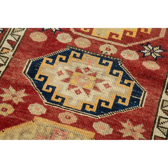 Herki Runner Rug 89 cm width and 384 cm length and the pile height is 5mm, the approximate weight of the rug is 8,55 kg. It’s % 100 hand knotted wool and goat hair rug. It’s made from the natural dye.