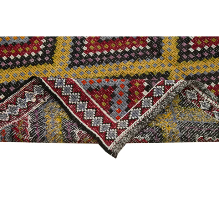 Vintage Cecim kilims are on 185 cm width and 353 cm length and the pile height is 5mm, the approximate weight of the rug is 14 kg. It’s % 100 handknotted wool and goat hair rug. It’s made from the natural dye.