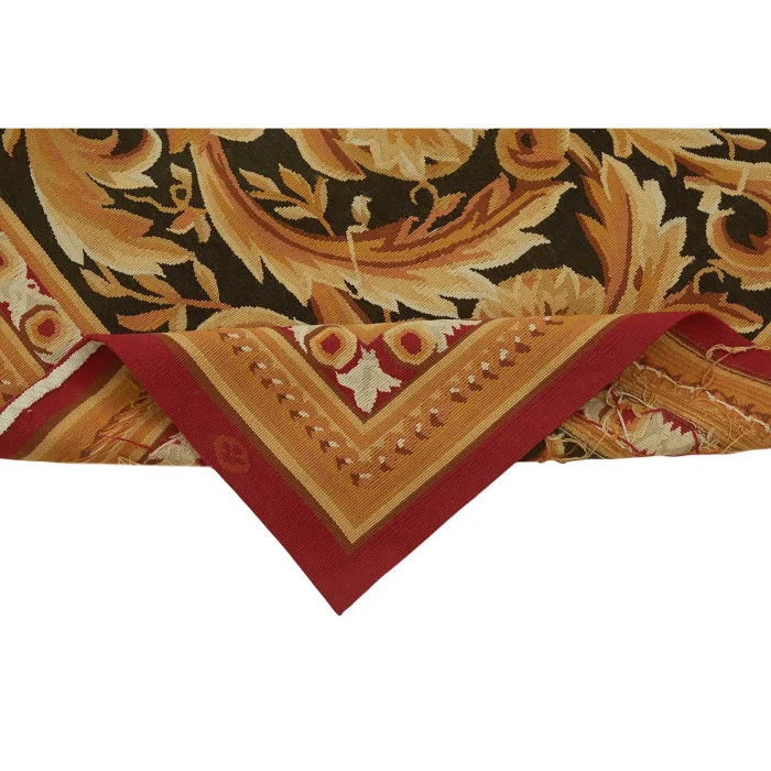 The Aubusson Rug is 90 cm wide by 300 cm long and about 5 mm thick. It weighs an average of 3 kg. It is made with hand-spun wool and cotton. It takes its colors from root dyes obtained naturally.