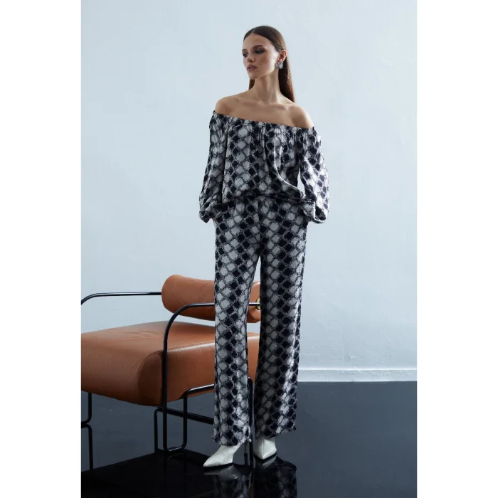 Product: Chic Patterned Wide Leg Satin Trousers With Elastic Waist