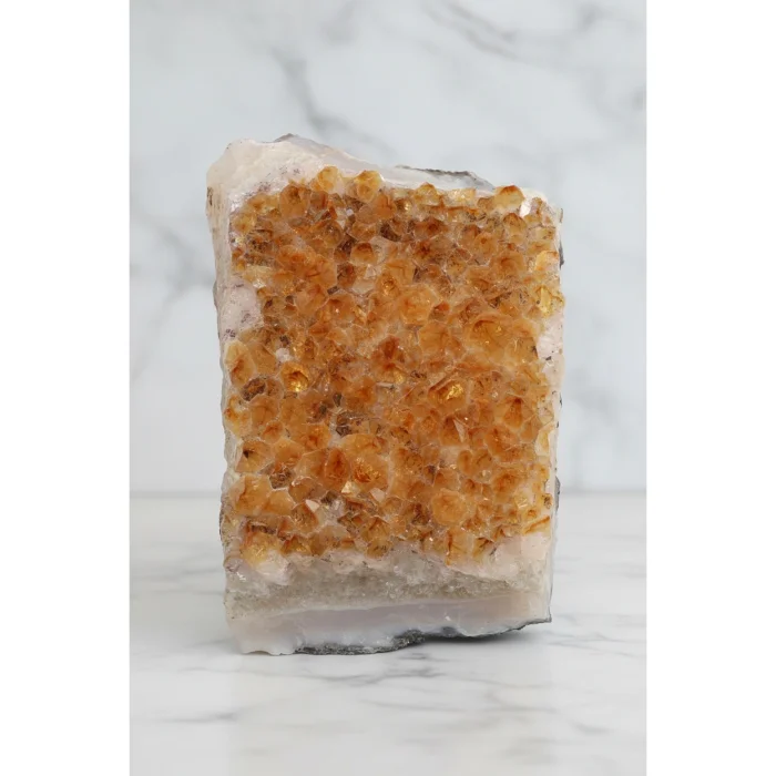 With its transparent and shiny texture, it stands out as a sophisticated natural stone décor in tables, showcases, offices or living spaces. Each piece of citrine carries a unique and unique character in terms of color intensity, crystal form and surface structure.