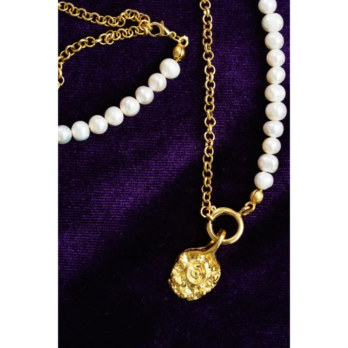 22K gold-plated material is used on real pearl and brass. Thanks to the clip on the pendant, you can change the tip and make the charm combination you want