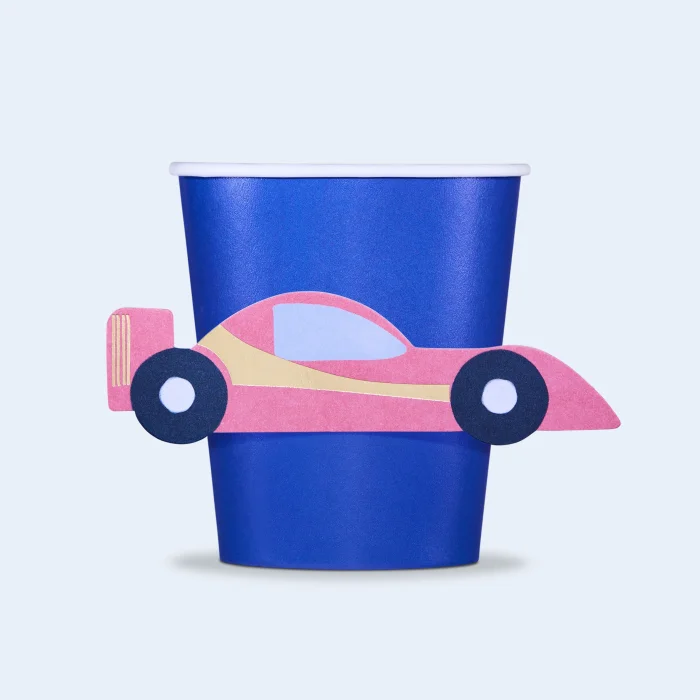 Product: Paper Cup (8 Pieces) // Racing Cars - Dark Blue