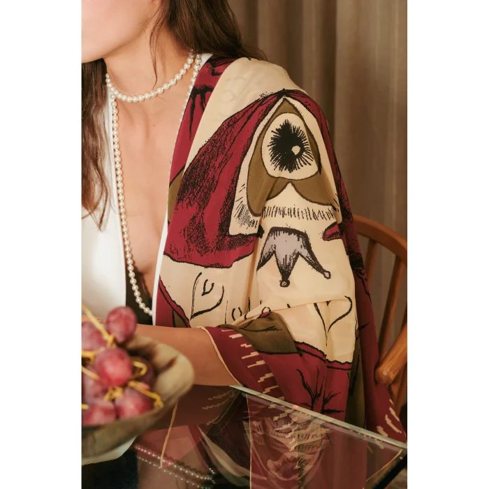 • The Eye Of The Heart Silk Scarf is made of 100% Crep Silk fabric.