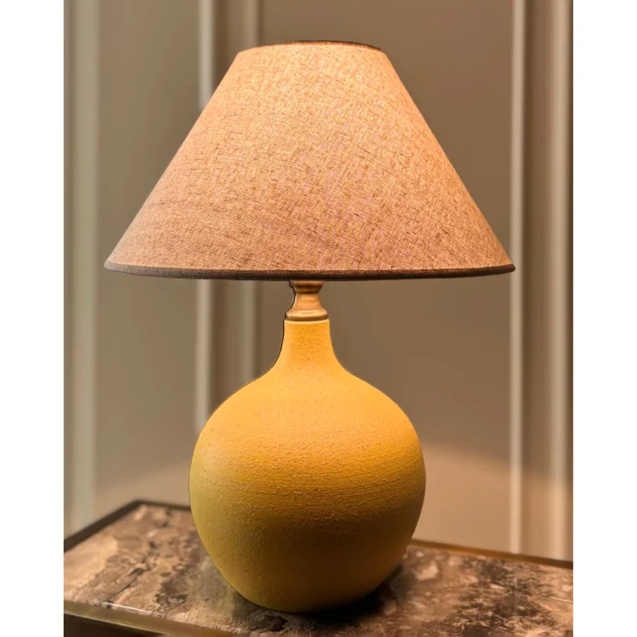 Lampshade, whose ceramic is hand-processed, is a special production of Semdecoart. The lampshade, which is hand-painted with imported paint, has undergone the firing process. Ceramics has a textured structure. The headdress color is linen.