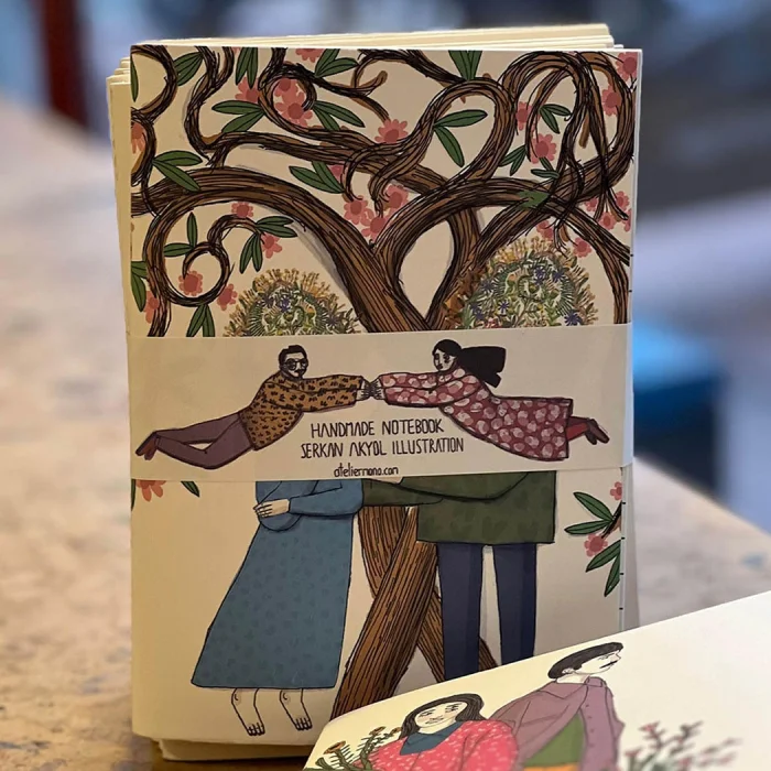 *The notebook consists of 64 pages / 32 pages. * Cardboard cover (350 g) is digital printed on matte canvas paper. * There is a small logo print on the back. * Unlined inner pages consist of 60g enzo paper. Illustration by serkanakyol.