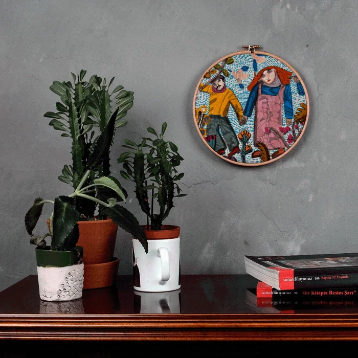 It is produced by stretching fabric on the pulley. Any drawing of Serkan Akyol can be applied.