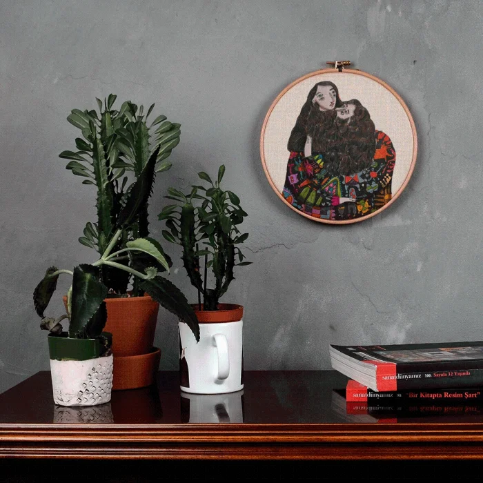 It is produced by stretching fabric on the pulley. Any drawing of Serkan Akyol can be applied.