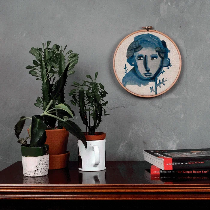 It is produced by stretching fabric on the pulley. Any drawing of Serkan Akyol can be applied.
