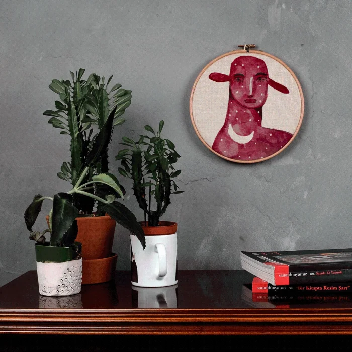 It is produced by stretching fabric on the pulley. Any drawing of Serkan Akyol can be applied.