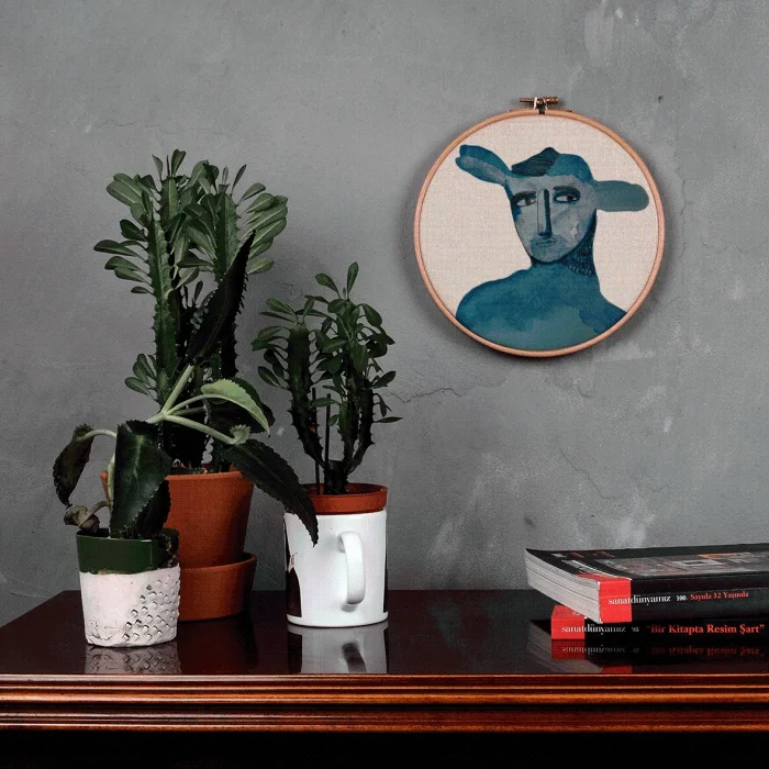 It is produced by stretching fabric on the pulley. Any drawing of Serkan Akyol can be applied.