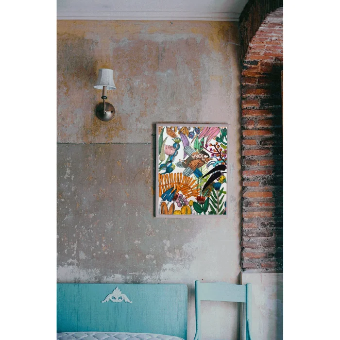 Drawings made with markers, dry and watercolors, then printed in giclée quality on 210g matte Hahnemühle enhanced paper. This technique; Art printing can capture 98% of the original colors, and these colors are preserved for about 200 years in a healthy way. *Will be sent by roll without frame. *Print size is 21x30. *Frame allowances are given extra. *Not measured.
