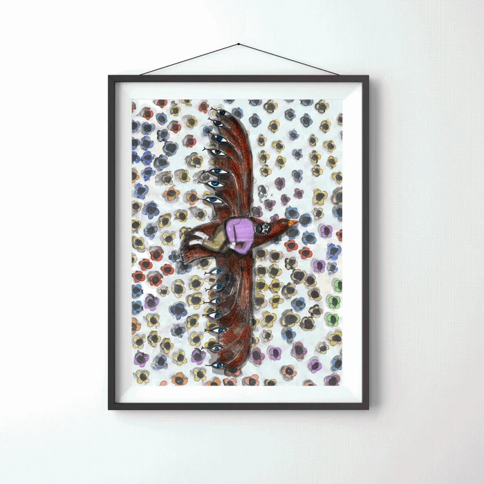 Drawings made with markers, dry and watercolors, then printed in giclée quality on 210g matte Hahnemühle enhanced paper. This technique; Art printing can capture 98% of the original colors, and these colors are preserved for about 200 years in a healthy way. *Will be sent by roll without frame. *Print size is 33x48. *Frame allowances are given extra. *Not measured.