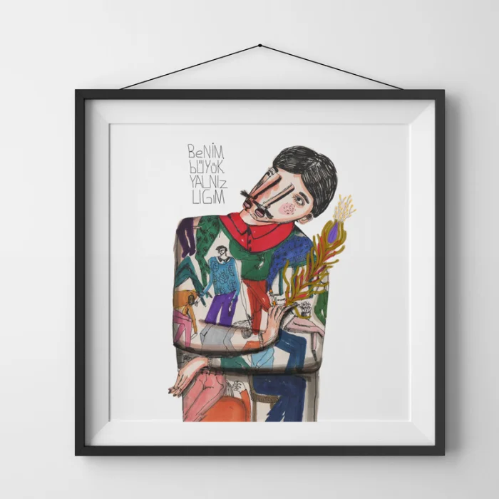 *Drawings made with markers, dry and watercolors, then printed in giclée quality on 210g matte Hahnemühle enhanced paper. This technique; Art printing can capture 98% of the original colors, and these colors are preserved for about 200 years in a healthy way. *Will be sent by roll without frame. *Print size is 50x50. *Frame allowances are given extra. *Not dimensioned