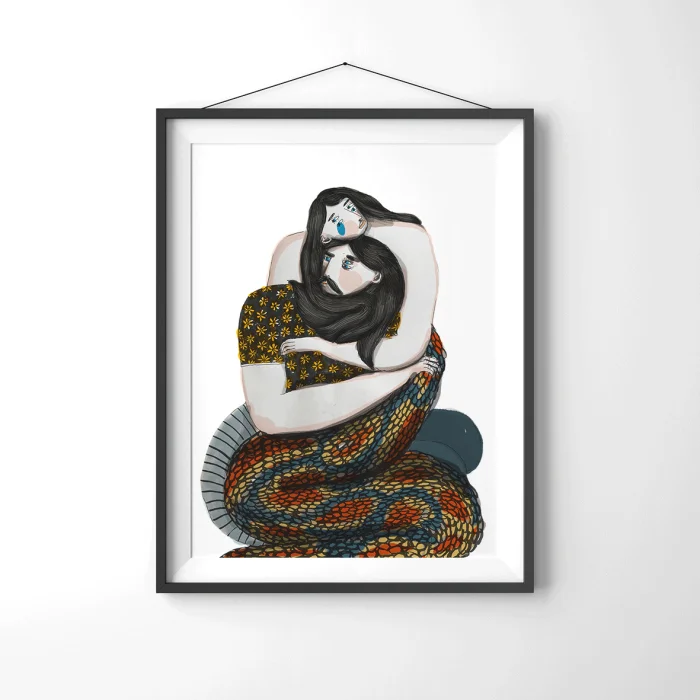 Drawings made with markers, dry and watercolors, then printed in giclée quality on 210g matte Hahnemühle enhanced paper. This technique; Art printing can capture 98% of the original colors, and these colors are preserved for about 200 years in a healthy way. *Will be sent by roll without frame. *Print size is 29x42. *Frame allowances are given extra. *Not measured.